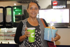 A sessão foi completa, com direito a pipoca doce e salgada, além de refrigerante, suco ou água, escolhidos pelas participantes. Para muitas delas, o momento foi ainda mais significativo por representar uma experiência especial compartilhada com as colegas de trabalho: a primeira vez numa sessão de cinema. Acompanhe o relato das experiências de cada uma: